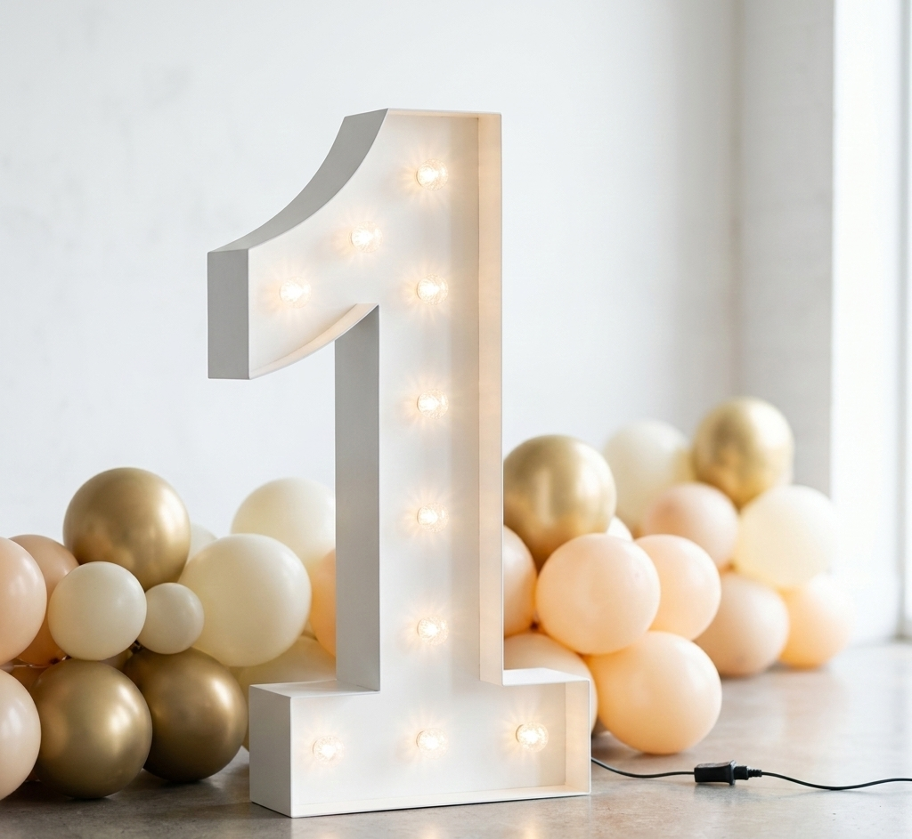 Our illuminated marquee numbers create a stunning focal point and the perfect backdrop for memorable photos.