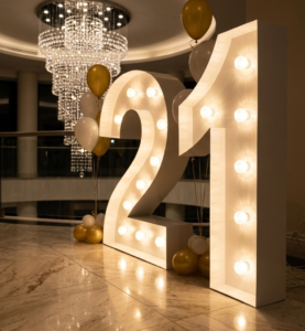 Whether you’re celebrating 18, 21, 30, 40, 50 or beyond, our light-up numbers add a stunning focal point to your celebration.